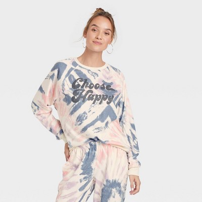 Women S Choose Happy Graphic Sweatshirt Off White Tie Dye L Target